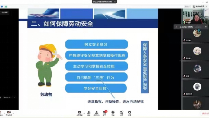 为进一步加强学生对劳动安全的理解,增强劳动安全意识。3月17日,beat365英国官网网站通过腾讯会议开展了大学生与劳动安全线上主题讲座。主讲人为院党委副书记张颜梅。19级、20级全体班委和宿舍长参加此次讲座。