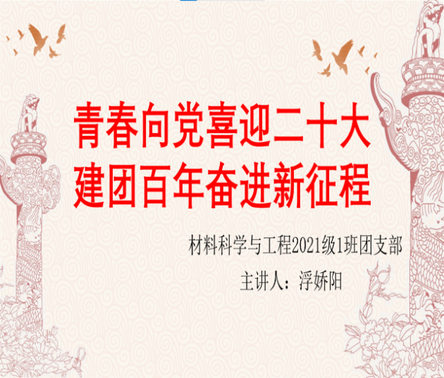 3月13日,材料21-1团支部通过腾讯会议开展“喜迎二十大,永远跟党走”线上主题团日活动,活动由团支部书记浮娇阳主持,支部全体成员参加。