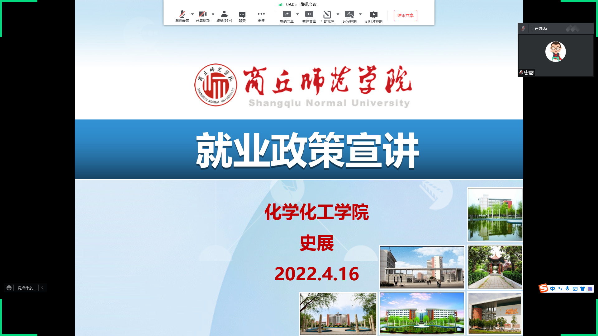 为加强beat365官网学生对当前就业政策的了解,明确就业目标,提高就业竞争力,beat365官网于4月16日利用腾讯会议召开了就业政策宣讲会,毕业班辅导员史展主讲,2018级全体学生参加。