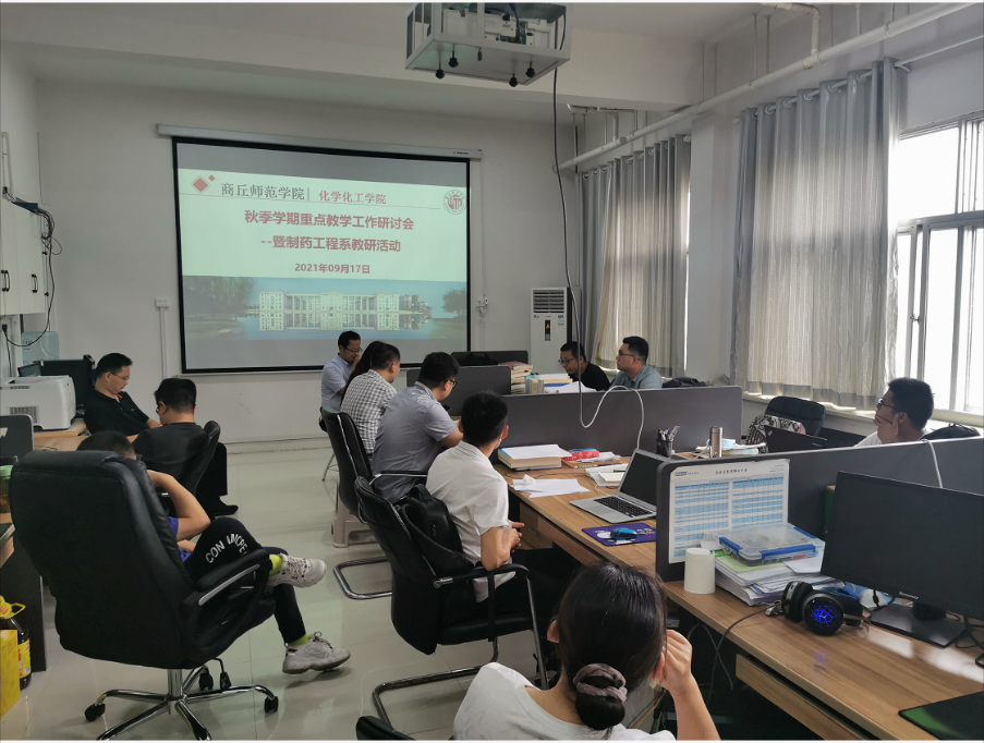 09月17日,制药工程系在化学实验楼416办公室召开了秋季学期重点教学工作研讨会暨新学期第一次教研活动。本次教研活动由beat365英国官网网站副院长、制药工程系主任王涛老师主持,制药工程系全体老师参加。