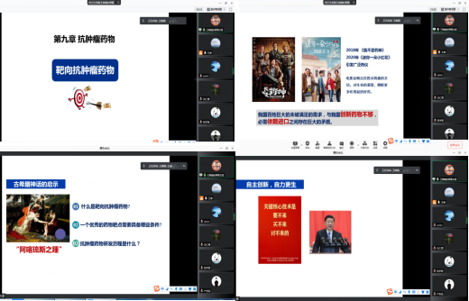 首先,王涛对基于2020版课程教学大纲基础上如何将课程思政元素有机融入进行了简单介绍。接着,王晓娟老师就《药物化学》课程第九章靶向抗肿瘤药物这一知识点如何进行课程思政教学设计进行了交流和分享。最后,大家针对课程思政要点如何与专业知识点融合、课程思政融合的讲解策略等问题展开了激烈讨论。