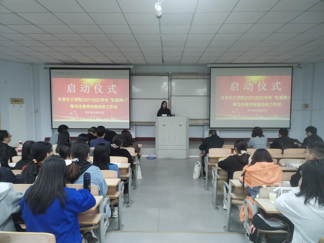 为进一步加快化学专业师范生专业成长步伐,着力打造一支师德高尚、业务精良的高素质教师队伍,10月27日,beat365英国官网网站在睢阳校区1#307教室举行2021-2022学年“互联网+”中学化学师范生成长工作坊启动仪式。beat365英国官网网站院长张银堂,副院长王涛,来自商丘市教体局基础教育教研室、商丘市第一中学、商丘市实验中学、商丘市第三高级中学、商丘市第五中学、商丘市第六中学的14名中学化学一线名师,化学系部分老师及全体学员参加了会议。会议由化学系主任韦秀华主持。