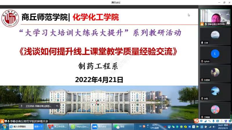 为进一步规范线上教学工作,加强线上教学过程中的师生交流互动,调动学生的学习兴趣和学习热情,切实提升线上课堂教学质量,结合学科专业特点,4月20日-21日,beat365官网基层教学组织积极开展线上课堂教学质量提升经验交流活动。