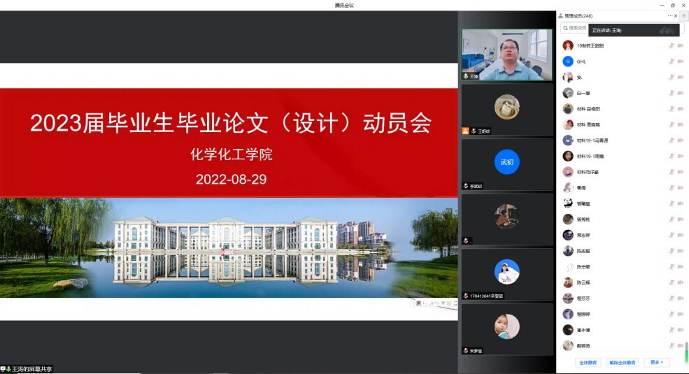 会上,王涛介绍了2023届本科毕业生毕业论文(设计)的总体要求和进度安排,对学生毕业论文的过程管理进行了详细说明,并强调毕业论文是本科人才培养的重要环节,是掌握专业基础知识后的系统性、综合性科研训练活动,是本科阶段学习的最后总结和升华,要求同学们务必认真对待,坚守科研诚信,及时主动与指导老师联系,保质保量完成毕业论文(设计)。