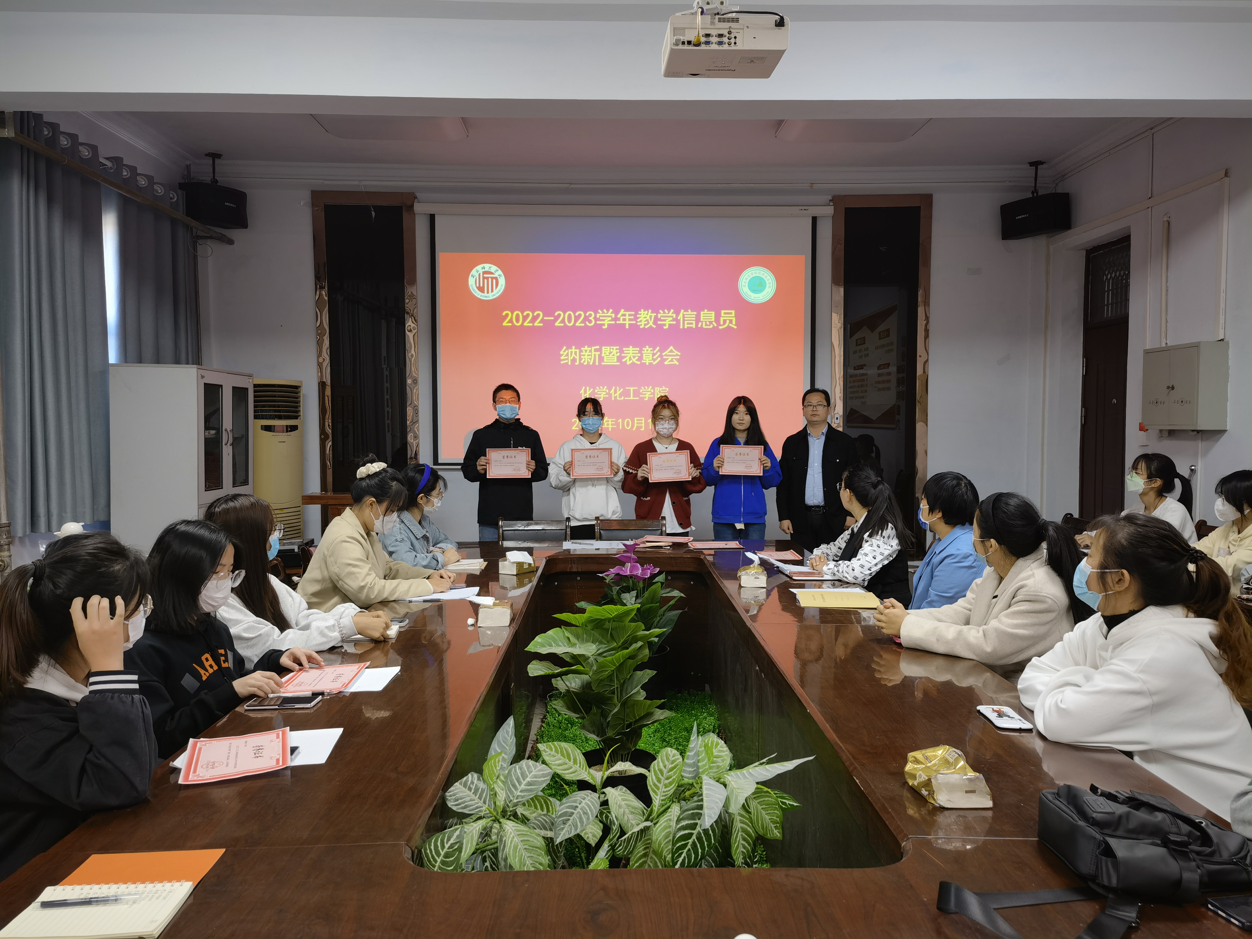 王涛宣读了《2022-2023学年学生教学信息员表彰人员名单》,并为获奖学生信息员颁奖;祝艳芳宣读了《beat365英国官网网站关于聘任2022-2023学年度学生教学信息员的决定》;张晓瑞就如何填写《学生反馈教学信息簿》进行了详细说明并提出具体要求。