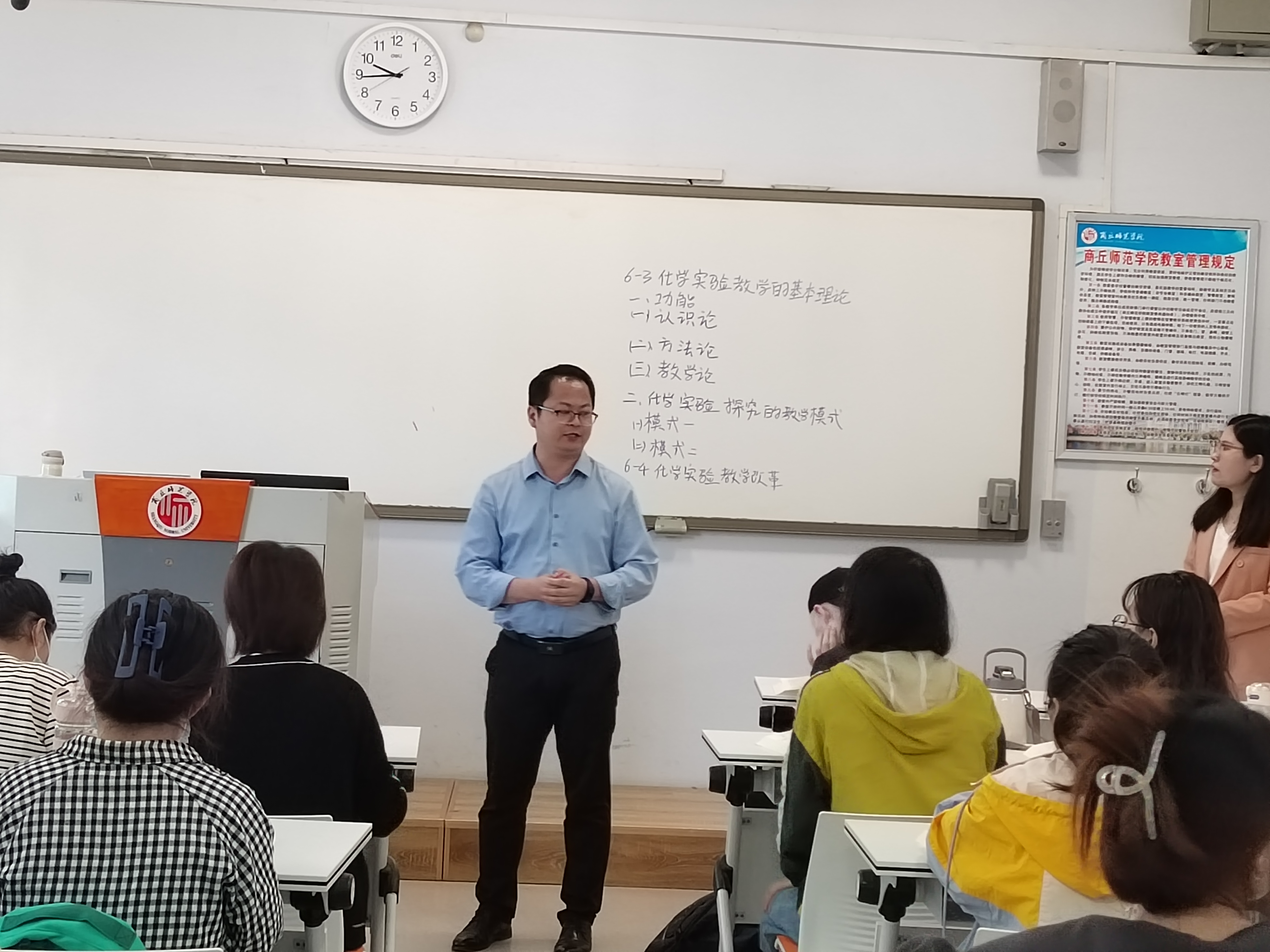 公开课后,王涛对本次公开课的课堂组织、内容设计等做了精彩点评,并鼓励学生学好《化学教学论》基本理论知识并学以致用,提高自身的师范生专业技能和素养,为成为一名合格的教师打下坚实的基础。