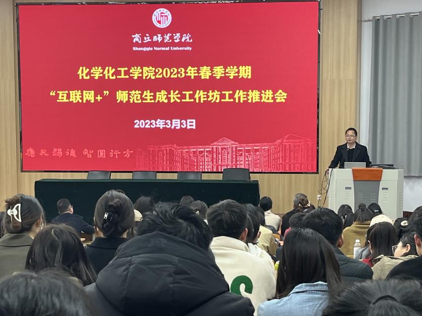 3月3日下午,beat365官网于睢阳校区物电报告厅开展了2023年春季学期“互联网+”师范生成长工作坊工作推进会。副院长王涛,化学系主任韦秀华、副主任董辉,17位工作坊坊主以及2020级化学(师范)专业全体学员参加了本次会议。