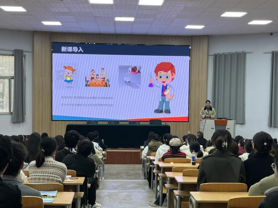 随后,2019级化学专业学生朱丽敏展示了一节微型课。商丘市教体局基础教研室教研员李文静老师进行了精彩点评,在充分肯定朱丽敏同学教学综合素质的同时,对教学设计、教学内容、表达技巧等方面提出了改进建议。
