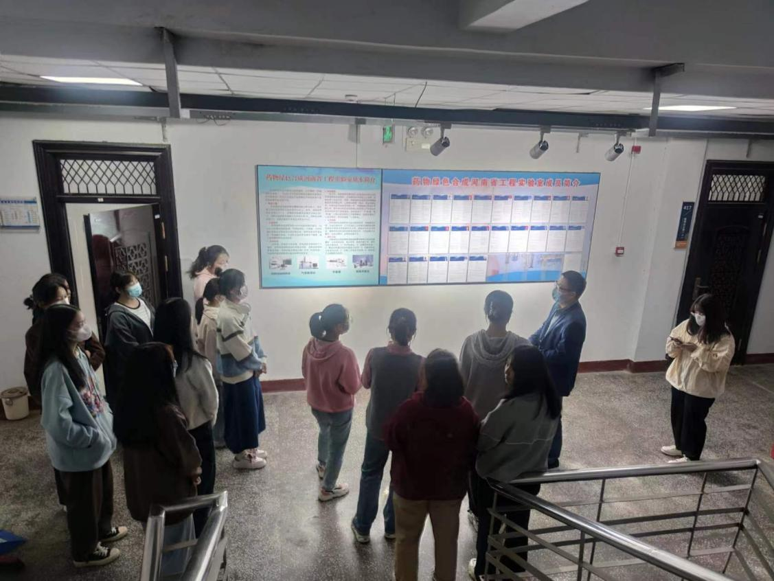 张明亮从专业特色、师资力量、学科建设、人才培养方案、教学科研成果、近几年学生培养成效等方面对制药工程专业做了详细介绍,让2022级新生对专业有了全面的认识和了解,为其明确大学四年学习内容、制定职业规划提供了支持。王涛解读了学校有关学生转专业、完全学分制改革、专业结构调整等文件精神。刘澜涛从自身的经历出发,鼓励同学们要厚植专业情怀,积极进行角色转变,不断提高自我认知,努力提升学习方式方法,培养良好的个人习惯,增强自我约束能力,学会自我管理、自我教育、自我服务,与同学和谐相处,尽快适应大学的学习、生活环境。参会的其他老师对同学们提出的问题进行耐心解答和交流。活动最后,在老师们的带领下2022级新生参观了河南省药物绿色合成工程研究中心。