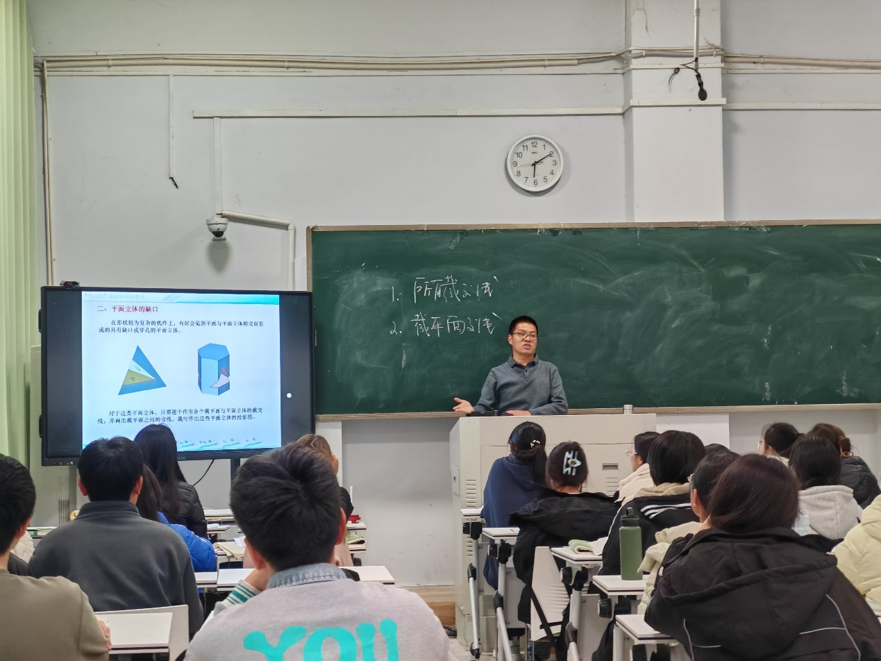11月25日周一下午第7节,刘双老师主讲的《工程制图》范式改革公开课在文化路校区1号教学楼103教室进行。副院长王涛和部分新进教师参加了观摩活动。