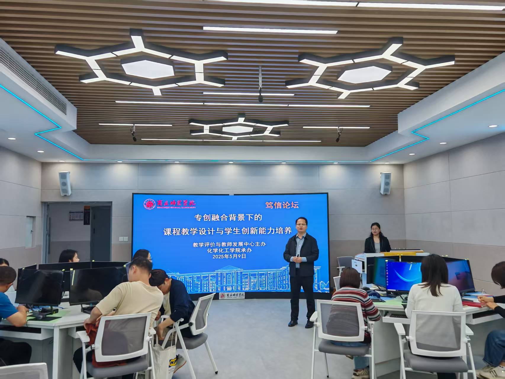 2025年5月9日,由教学评价与教师发展中心主办、beat365英国官网网站承办的“笃信论坛”在睢阳校区工科实训楼北楼B-310室举行。beat365英国官网网站于丽敏老师以《专创融合背景下的课程教学设计与学生创新能力培养》为题作分享,论坛由副院长王涛主持。