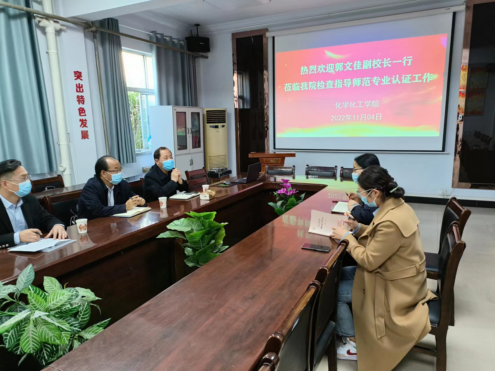 11月4日,副校长郭文佳莅临beat365官网指导师范专业认证工作。院领导班子及化学师范专业认证工作组成员参加会议。教学评价与教师发展中心负责同志参加调研。