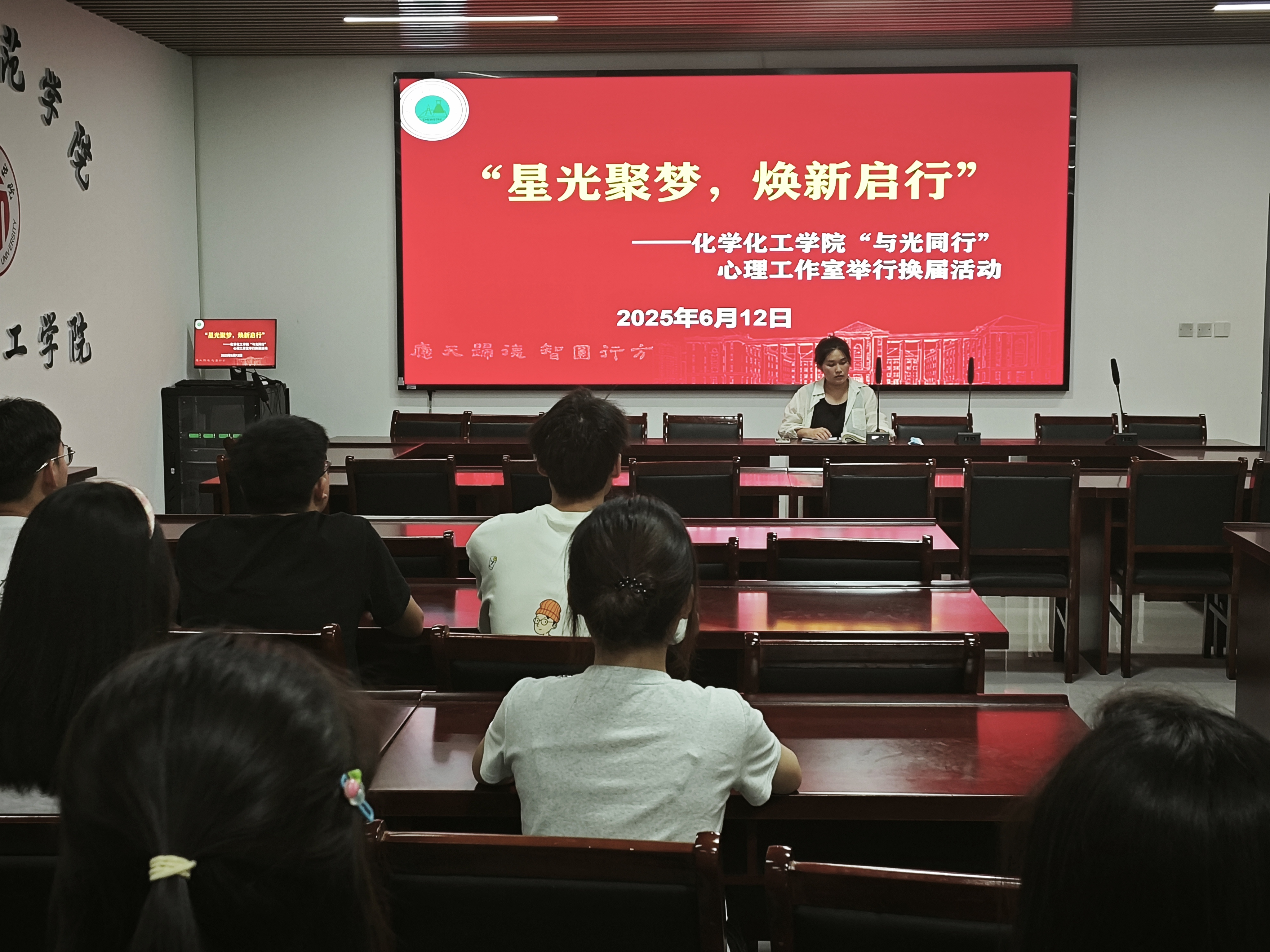 6月12日,beat365英国官网网站“与光同行”心理工作室于工科实训大楼B309会议室举行“星光聚梦,焕新启行”换届活动。活动由心理部成员卢海波主持,心理专员李宁娅出席活动,工作室全体成员参加。